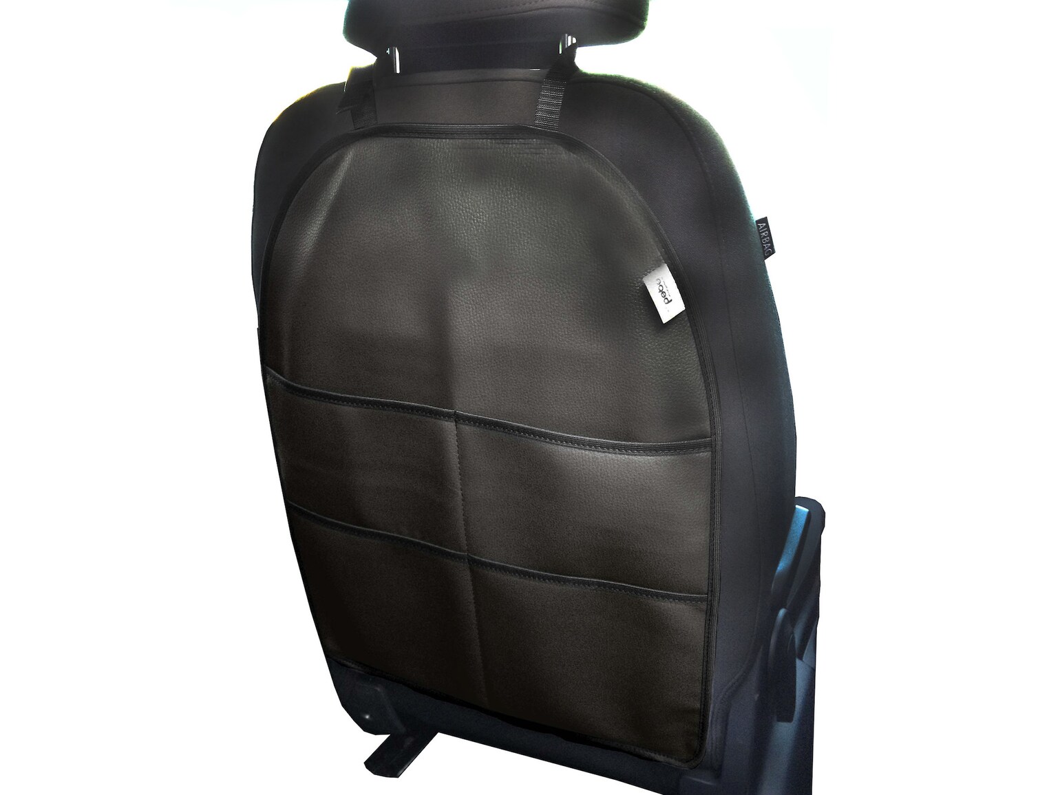 Ett sparkskydd förhindrar slitage och nedsmutsning på bilsätet, vinter som sommar. Skyddet monteras på framstolens rygg, där även praktiska förvaringsfickor finns för barnets leksaker och tillhörigheter. Tillverkad av textil med förstärkt konstläder vilket både är slitstarkt och stilrent.