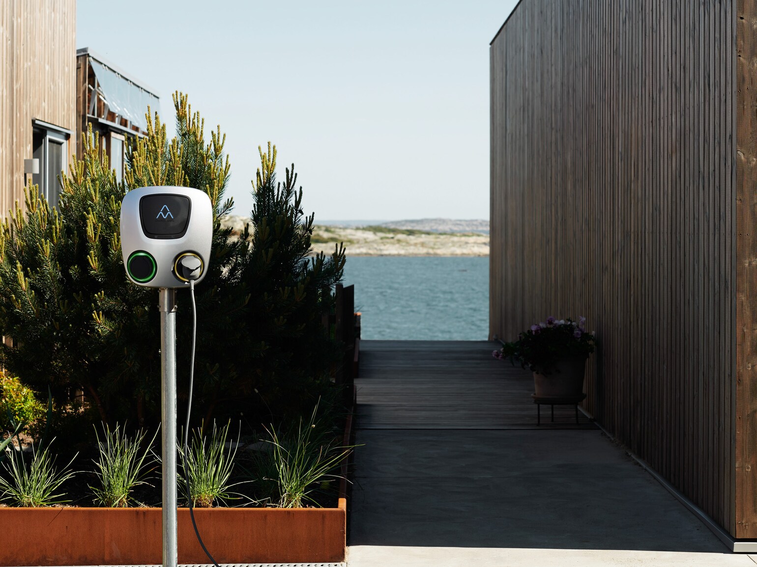 Charge Amps AURA är en smart och effektiv laddbox för en eller två elbilar. Utvecklad för ett nordiskt klimat och har en slät design som gör den enkel att rengöra.