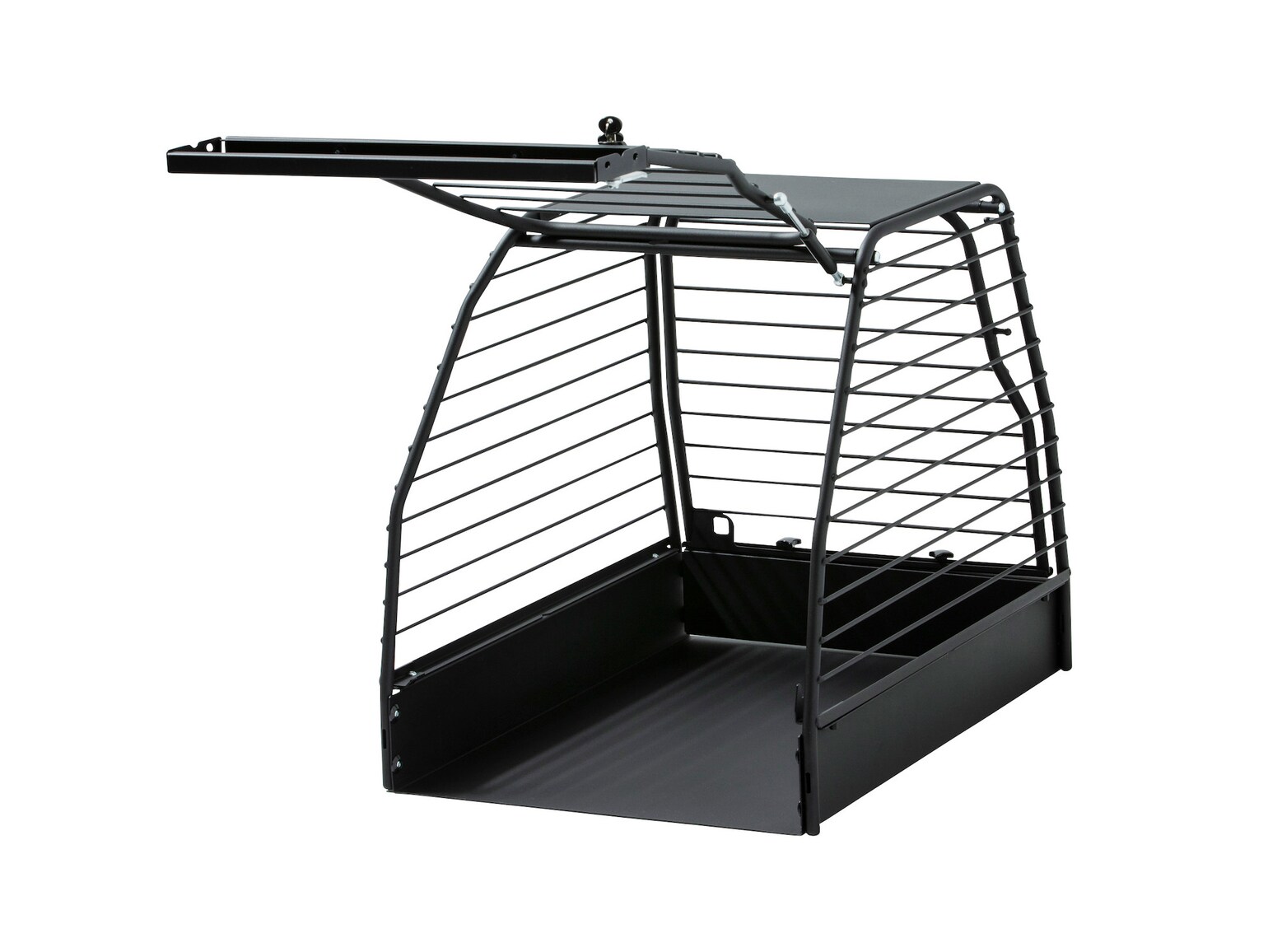 Utrustad med gasfjäder som håller uppe dörren. Tack vare låssystemet i buren kan säkerheten garanteras för hunden även när bakluckan är öppen. Nödlucka finns om dörren skulle bli blockerad.