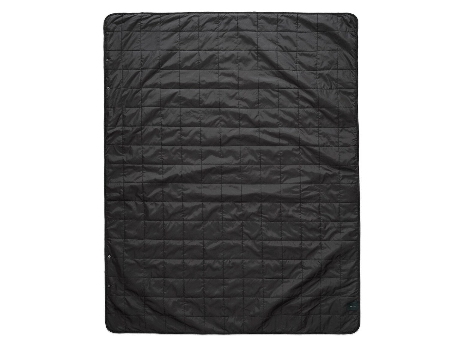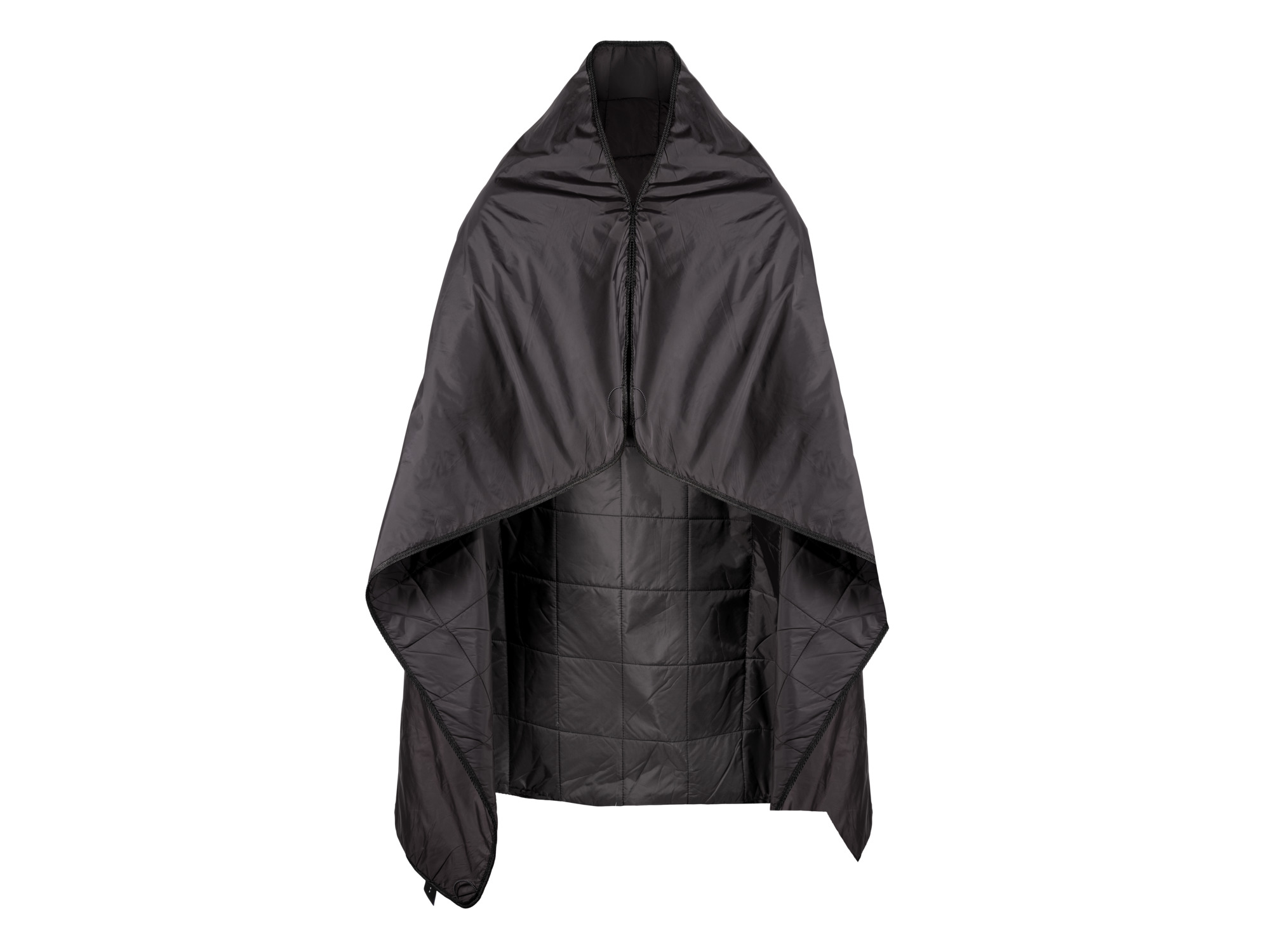 Lätt och trendig charcoalgrå filt, designad med naturen som inspiration. Filten är tillverkad av 100% återvunnen nylon och har ett vadderat värmande foder gjort av 100% återvunnen polyester samt en vatten och smutsavvisande fluorkarbonfri impregnering. Under kalla dagar kan du enkelt värma dig med hjälp av filtens två knappar som håller den på plats runt dig.