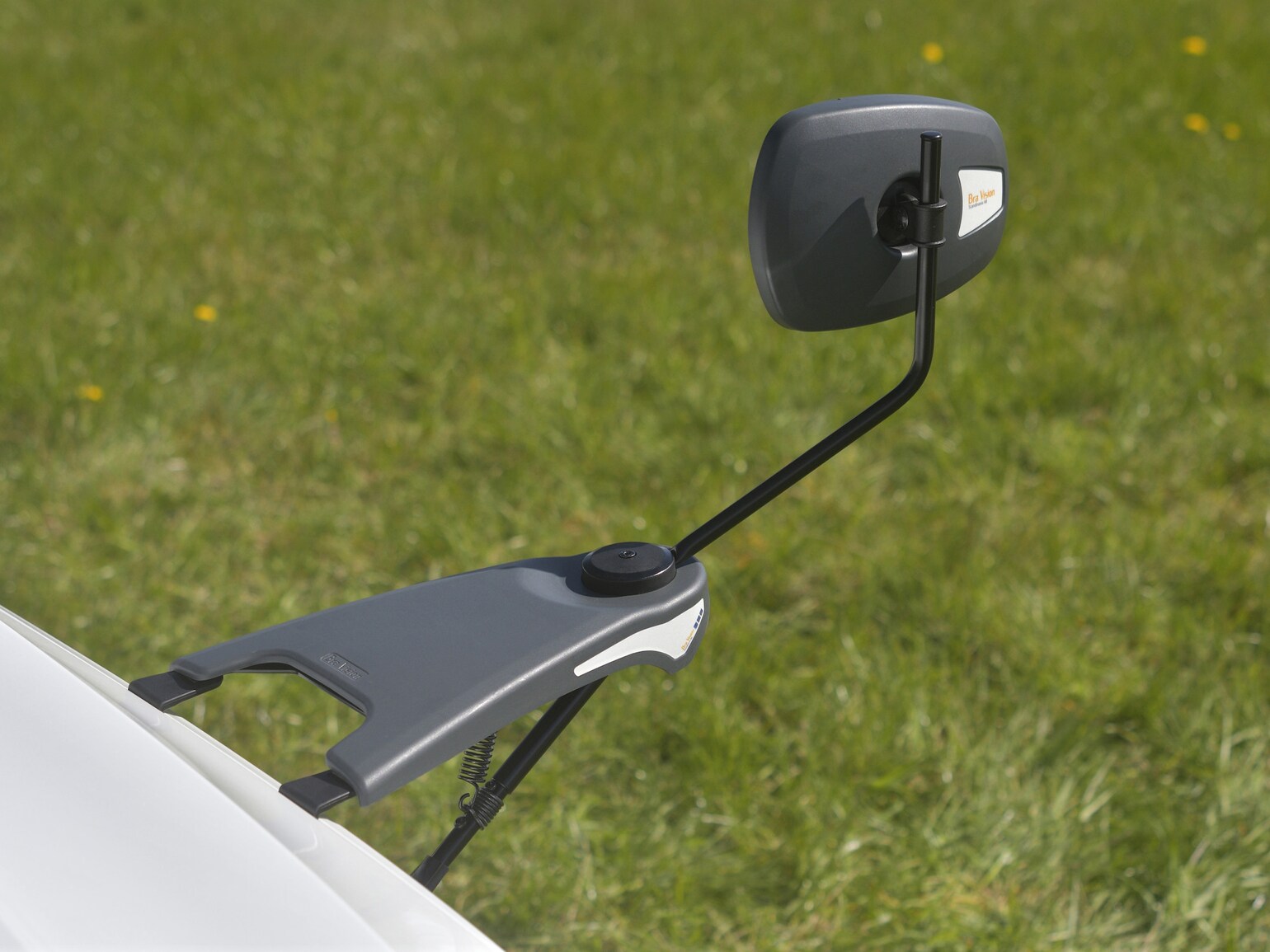 En rejäl sidospegel avsedd att användas vid körning med extra brett släp t.ex. en husvagn. Spegeln är enkel att montera och skaver inte mot bilens lackering. Spegeln kan fällas in mot bilen vid körning i trånga passager. Vid förvaring kan spegeln fällas ihop.