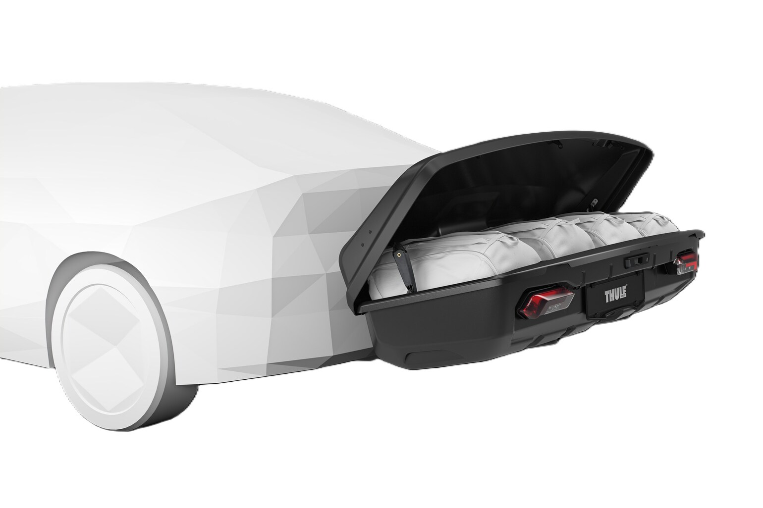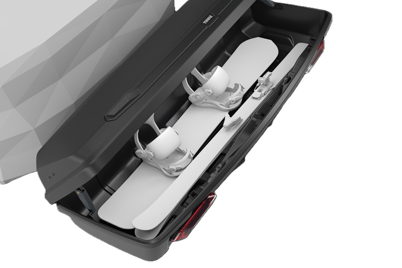 Med Thule Arcos XL får du mängder av lättillgängligt lastutrymme baktill på bilen och kan tom lasta skidor upp till 180 cm längd! Håll insidan av bilen ren och taket fritt, och slipp lyfta lasten upp på taket. Boxens låga montering gör att bagageutrymmet är tillgängligt även när boxen är monterad. Volym 450 liter.