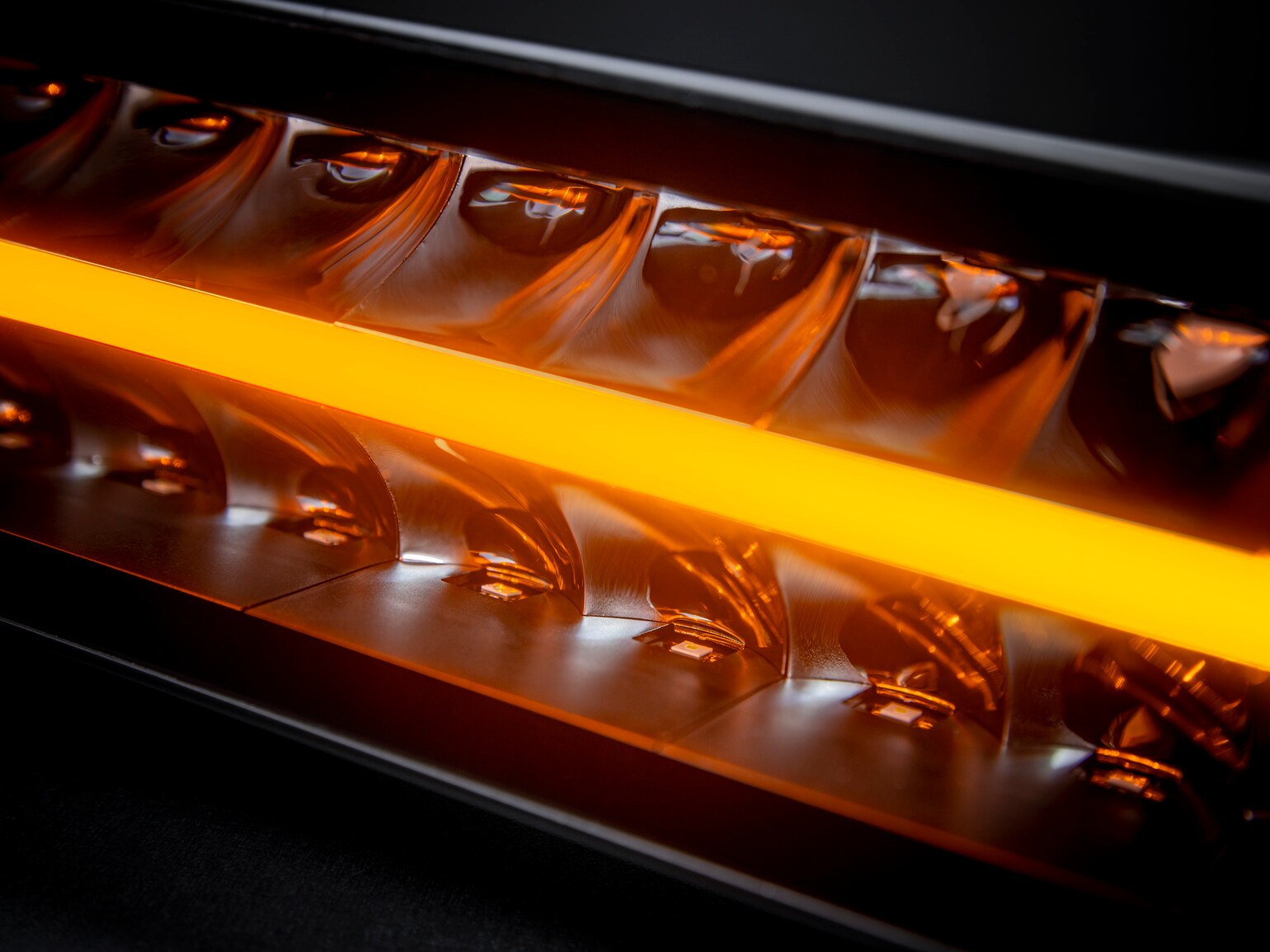 Siberia Outlaw särskiljs från andra LED-ramper i Siberia-serien med sin gula Strands-logotyp.