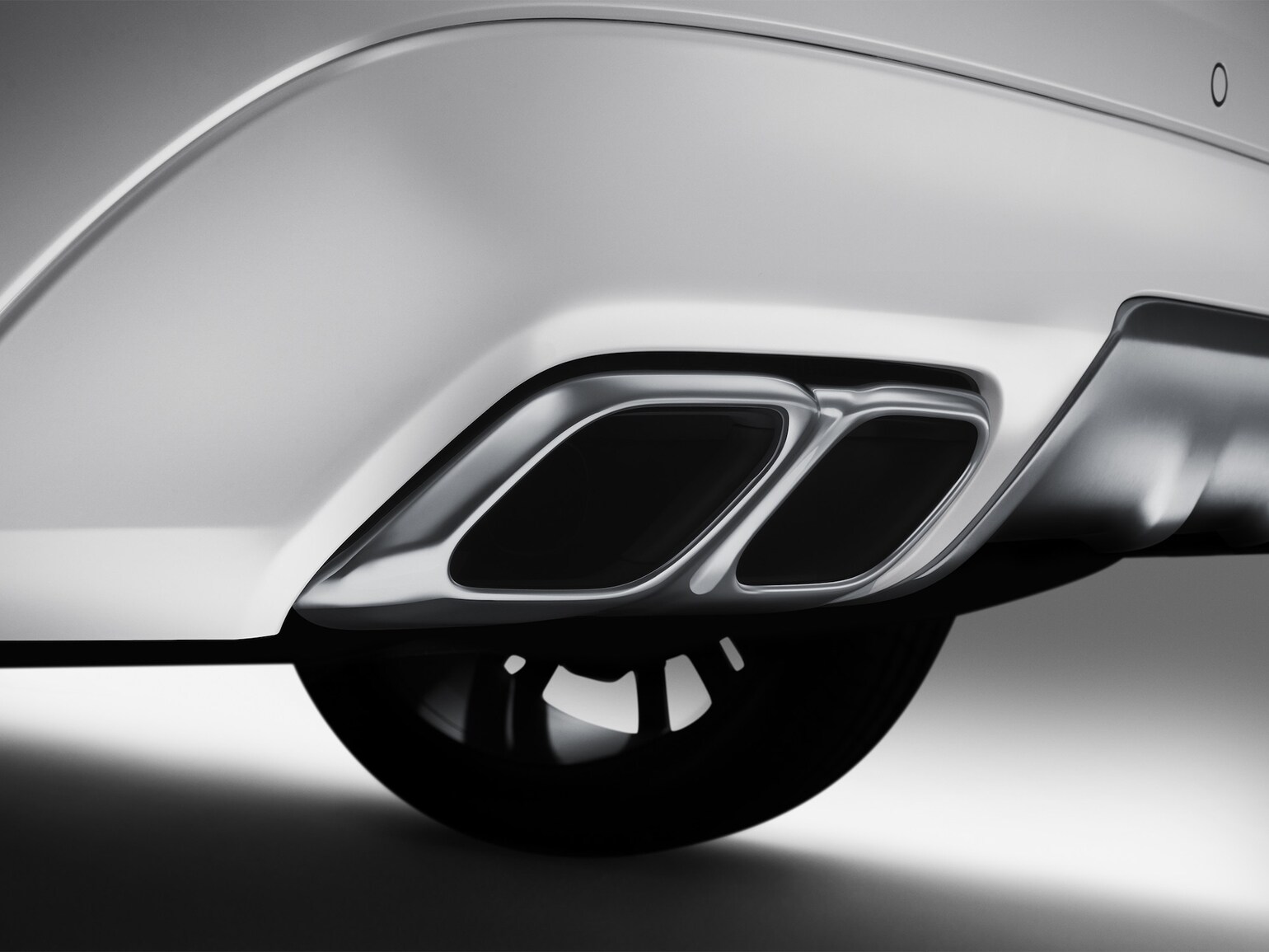 Skid plate, bakre stötfångare med dubbla slutrör. Med detta stylingelement förstärker du det visuella intrycket också för bilens bakparti. Förutom en färganpassad nedre stötfångardel med en skid plate i borstat rostfritt stål, ingår också fullt integrerade avgasslutrör. De dubbla slutrören ger ett uttryck av fyra slutrör som fyller ut på ett kraftfullt och exklusivt sätt.
