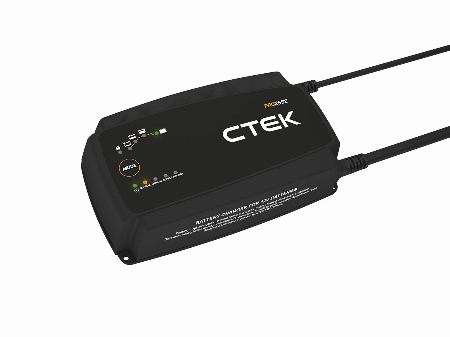 PRO25SE är en innovativ, mångsidig och högeffektiv 25A batteriladdare och kraftkälla. Den levereras med 6 meter laddkablar, så att du kan montera batteriladdaren på pelarlyften eller på arbetsplatsen.