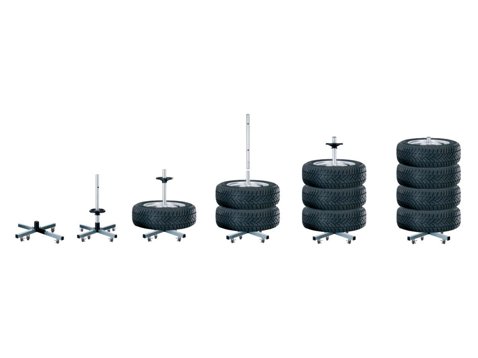 En praktisk hjulställning för lagring av upp till fyra hjul. Finns i två storlekar.